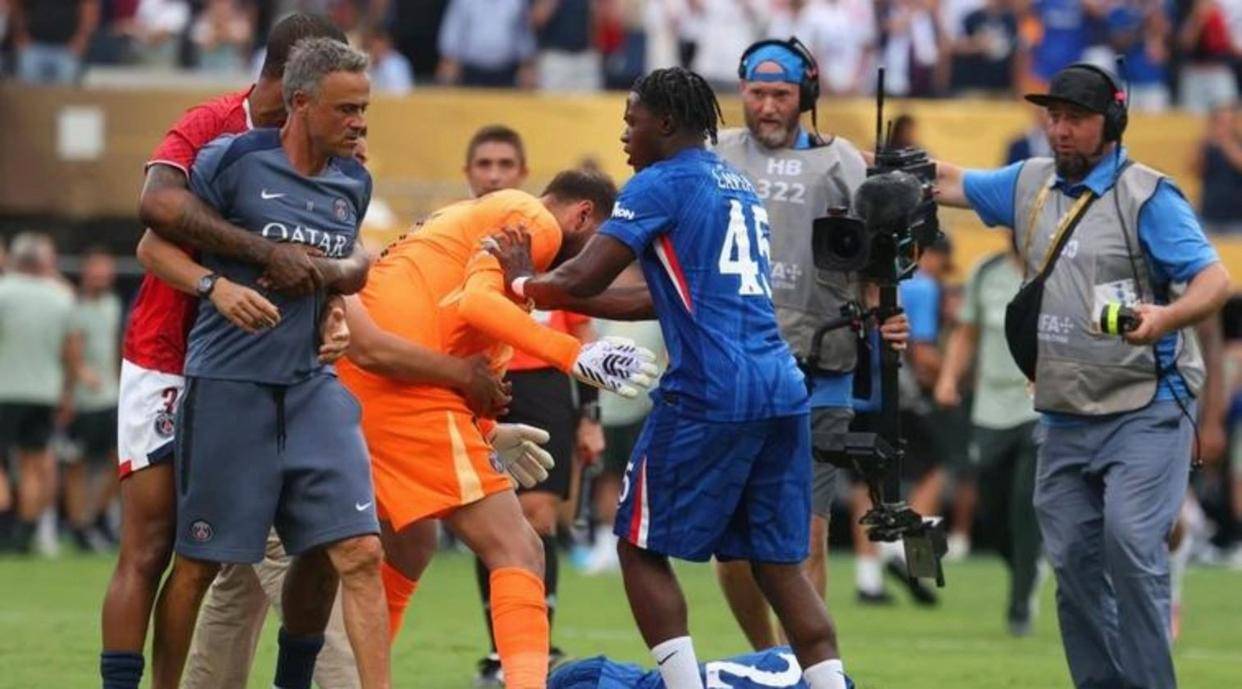 下半场韩国队突然压上来,动作越来越狠,肘击、飞铲、推搡都有,有人甚至直接踢马尔蒂尼头部,马尔蒂尼头上流血,莫雷诺却睁眼瞎。意大利球员抗议也没用,反而被判得更偏。